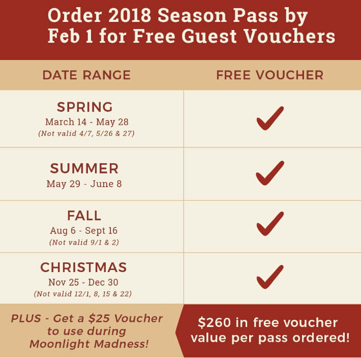 Time Traveler is set to open Spring of 2018. Don’t miss this deal! Purchase a season pass by February 1st and receive 4 FREE guest vouchers with your purchase!